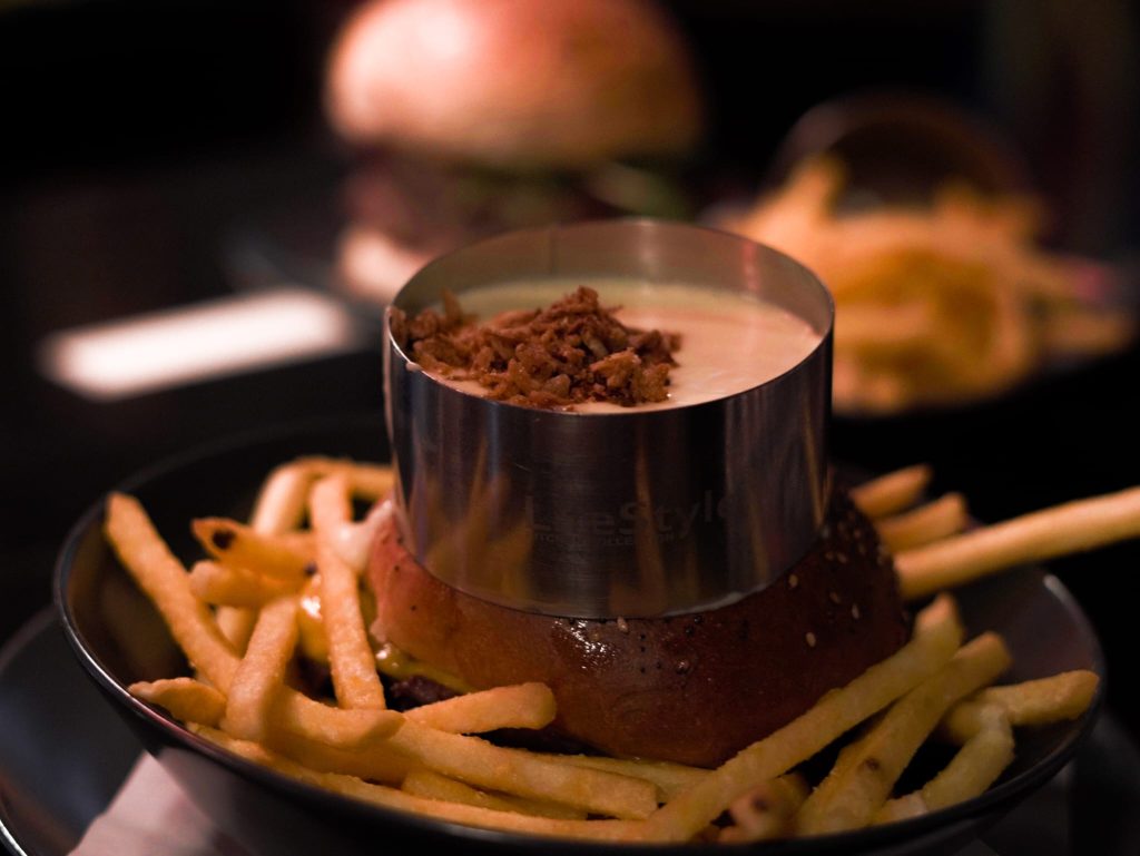 200 grs. de Carne, Queso Gouda, Bacon, Cebolla a la Plancha, Rúcula, Coronada con Un Aro de Cebolla y Flameada con Whisky Jack Daniel´s Honey